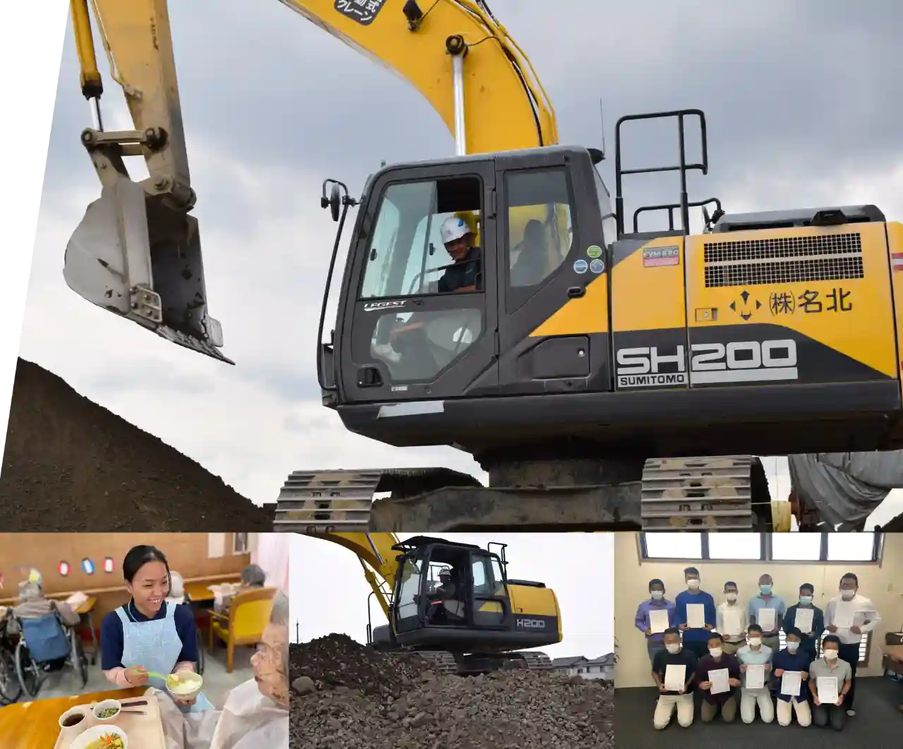 高齢者施設・障害者施設などにおける身体介護、食事・排泄・入浴介助、機能訓練補助などの業務を担います。